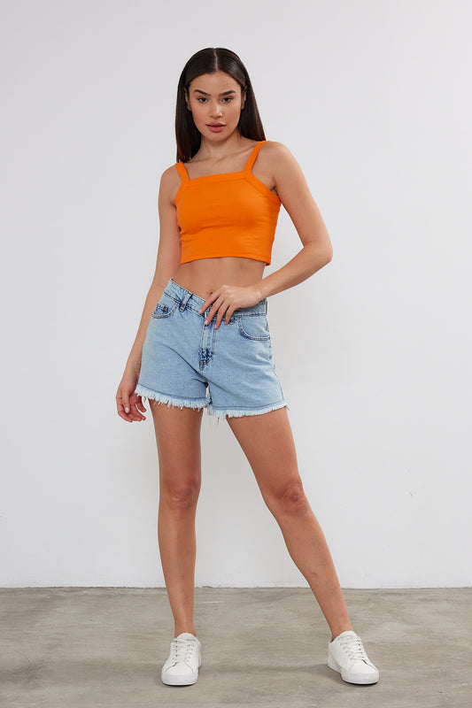 Ribbed Tank Top Starp Crop Top Cotton Short Tank Top 3538 S-M-L (2-2-2) 6 Pieces