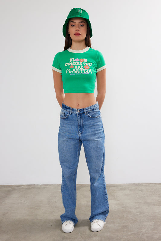 Womens Positive Vibe Crop Top Cropped T-Shirt (S-M-L / 2-2-2) 6 Pieces