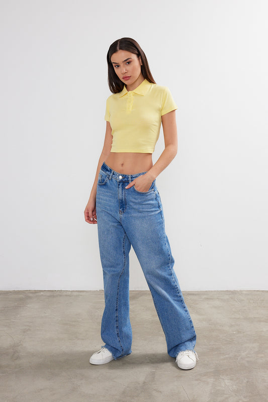 Womens Polo Neck Crop Top Polo Neck Cropped T-Shirt 4034 S-M-L (2-2-2) 6 PIECES
