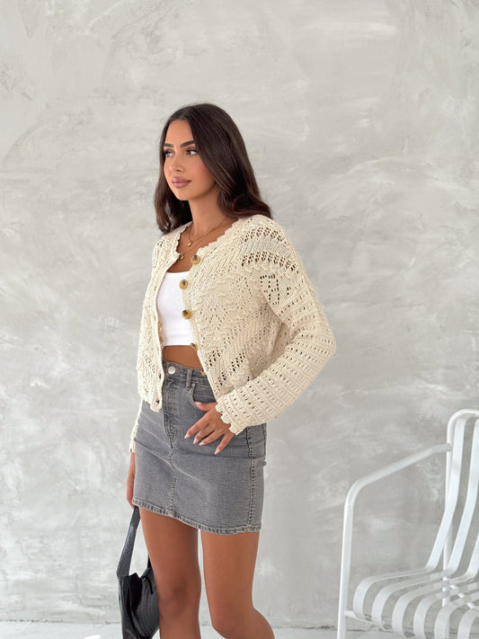 Women's Hallow Knit Cardigan Sand Color Open-Knit Cardigan SKU: 1544