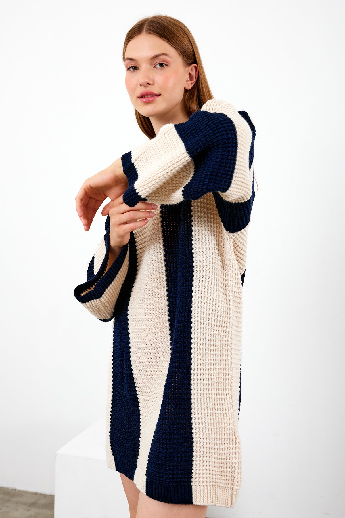 Great knit dress or knit tunic multi purpose striped knitwear, wholesale women's cardigan , a must have classic for your business.