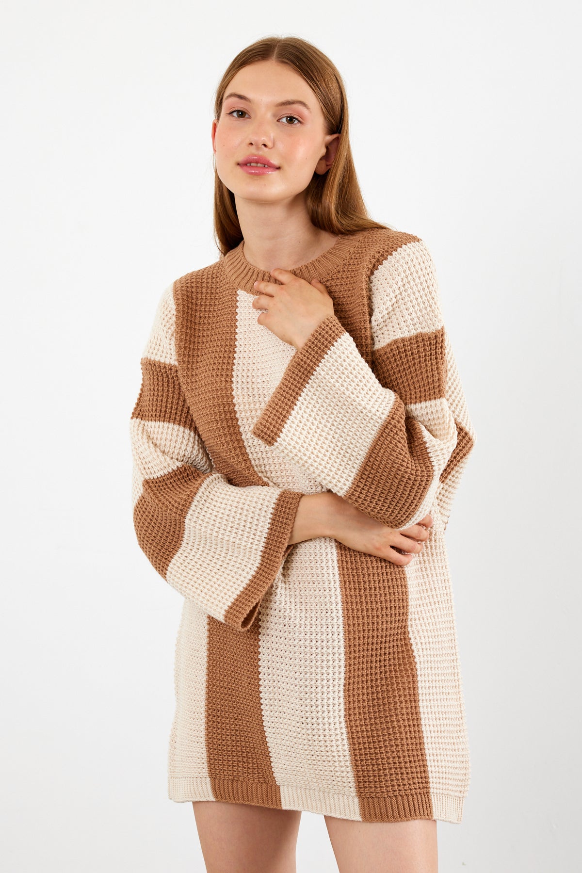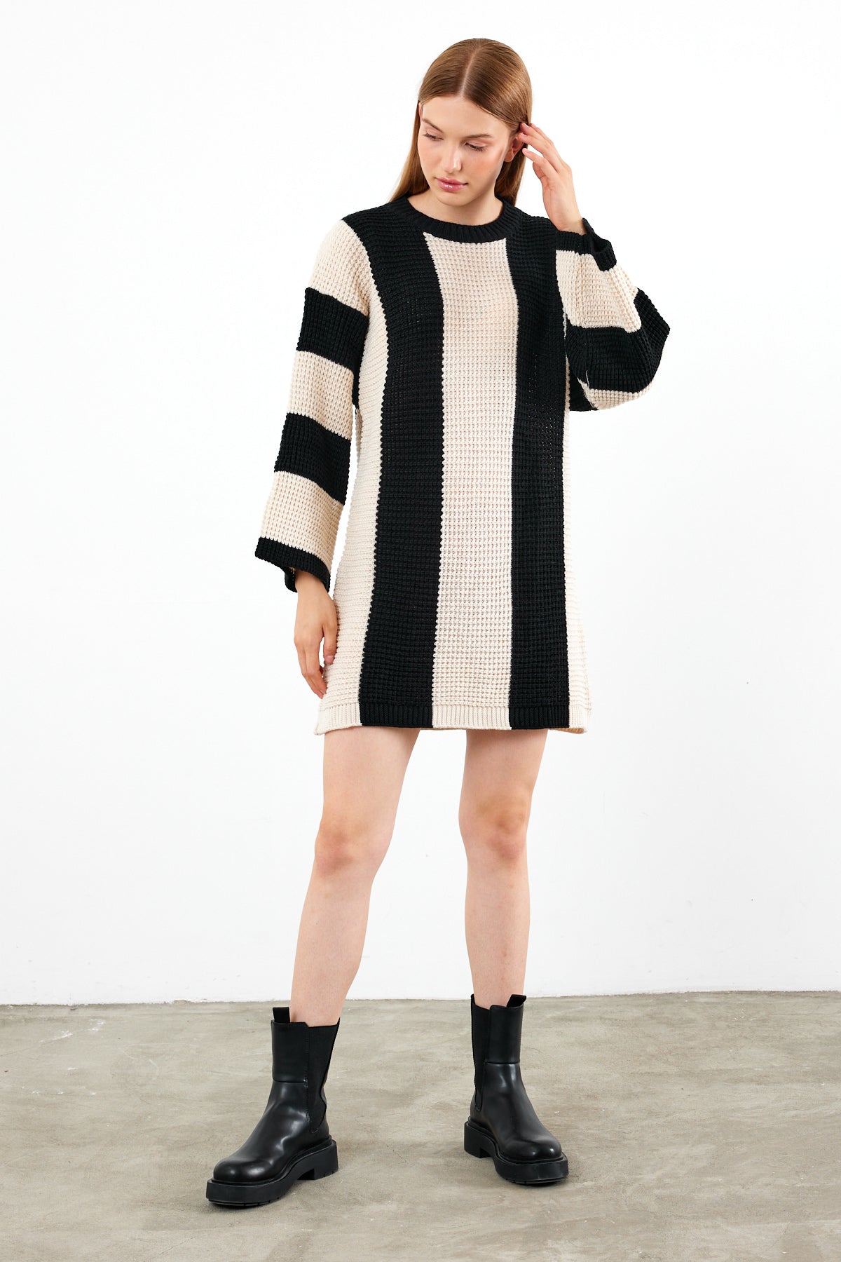 Knit Striped Mini Dress Knit Tunic Wide Striped- SKU: 3880