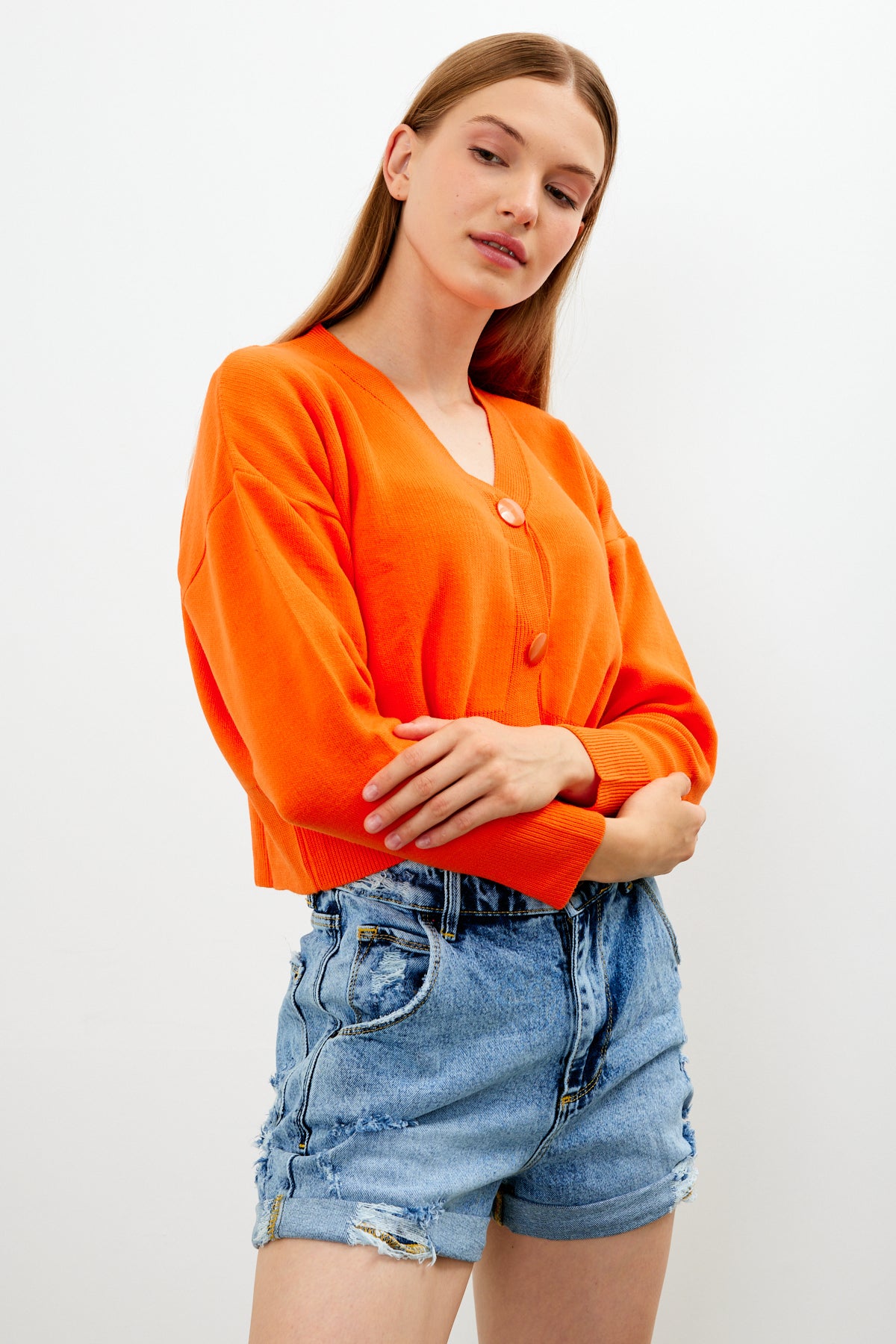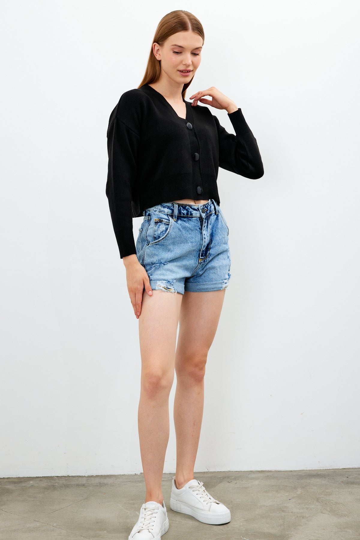 Cropped Solid Color Cardigan 3 Button - SKU: 1135