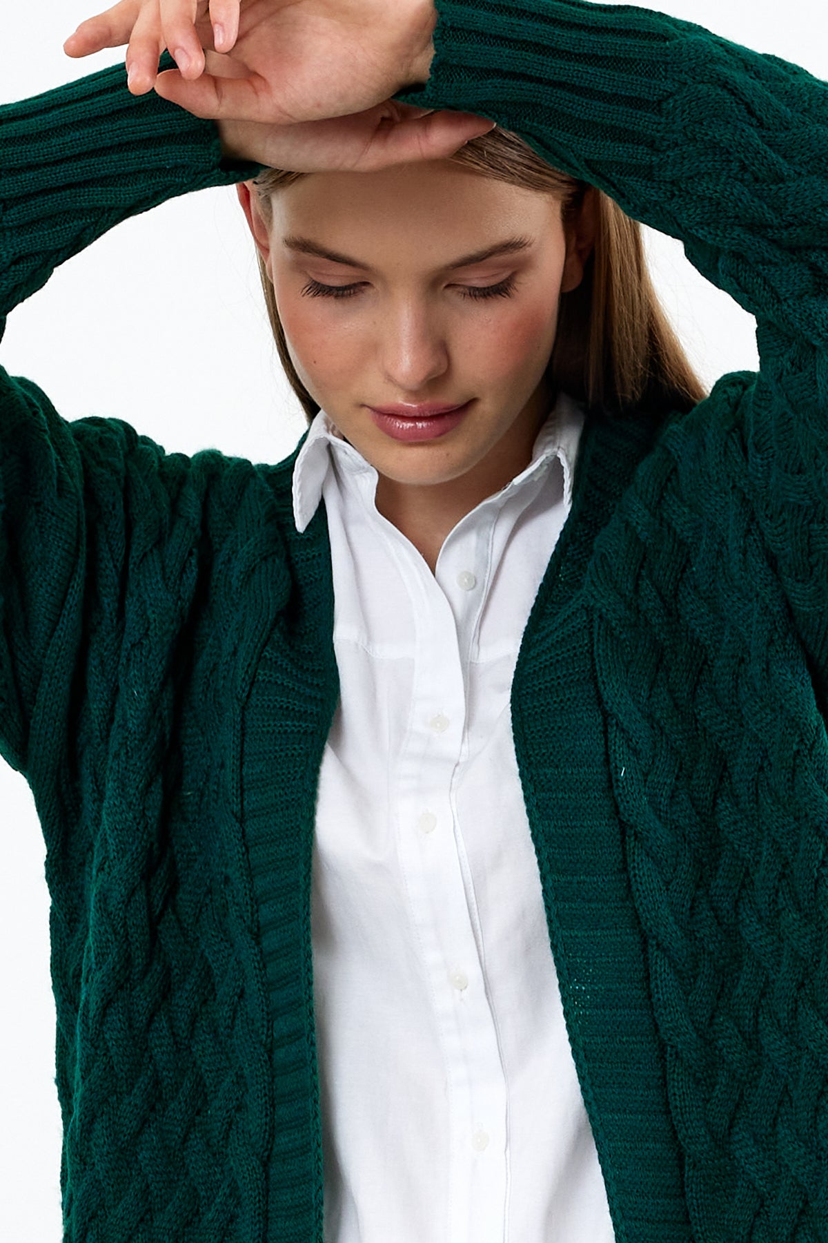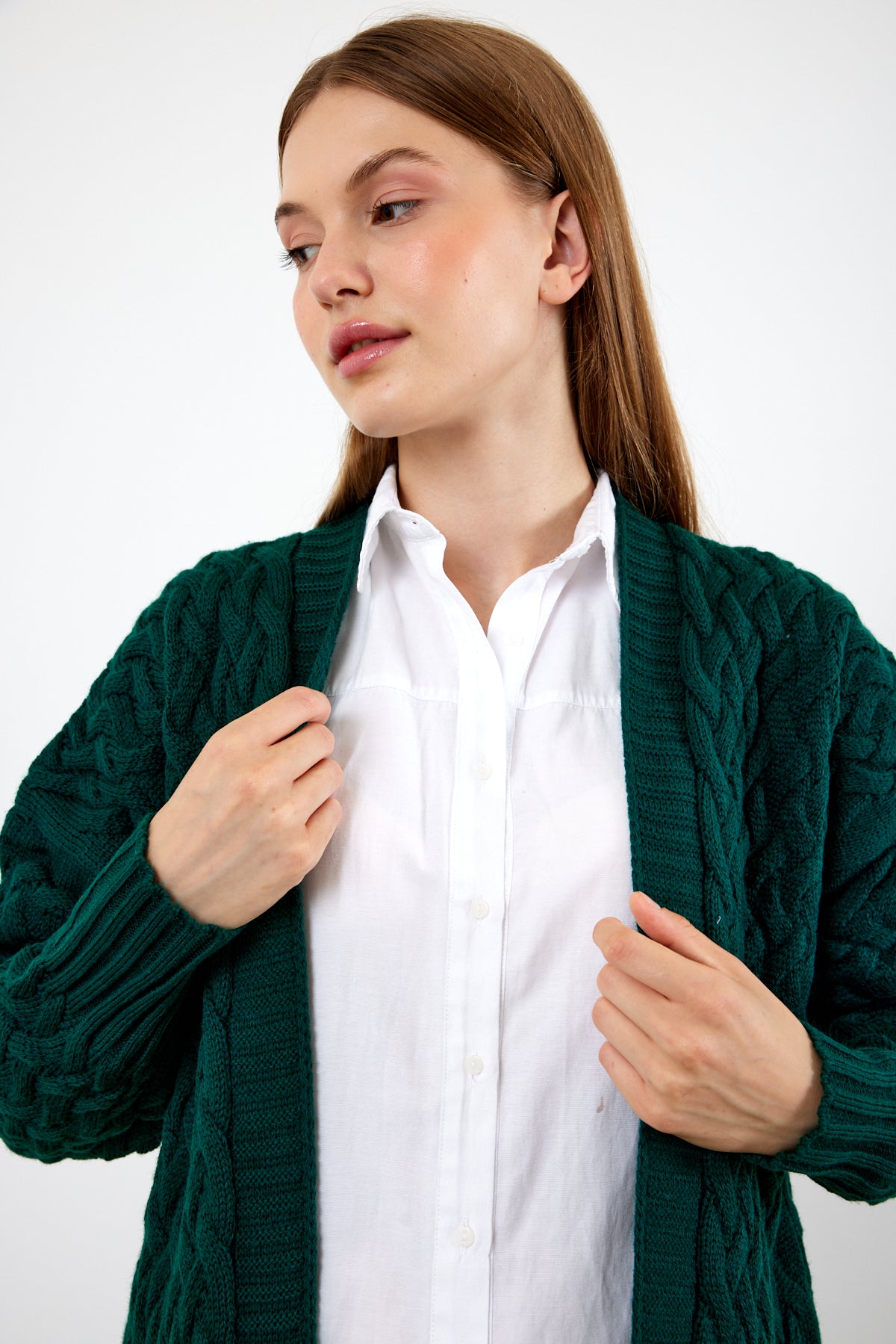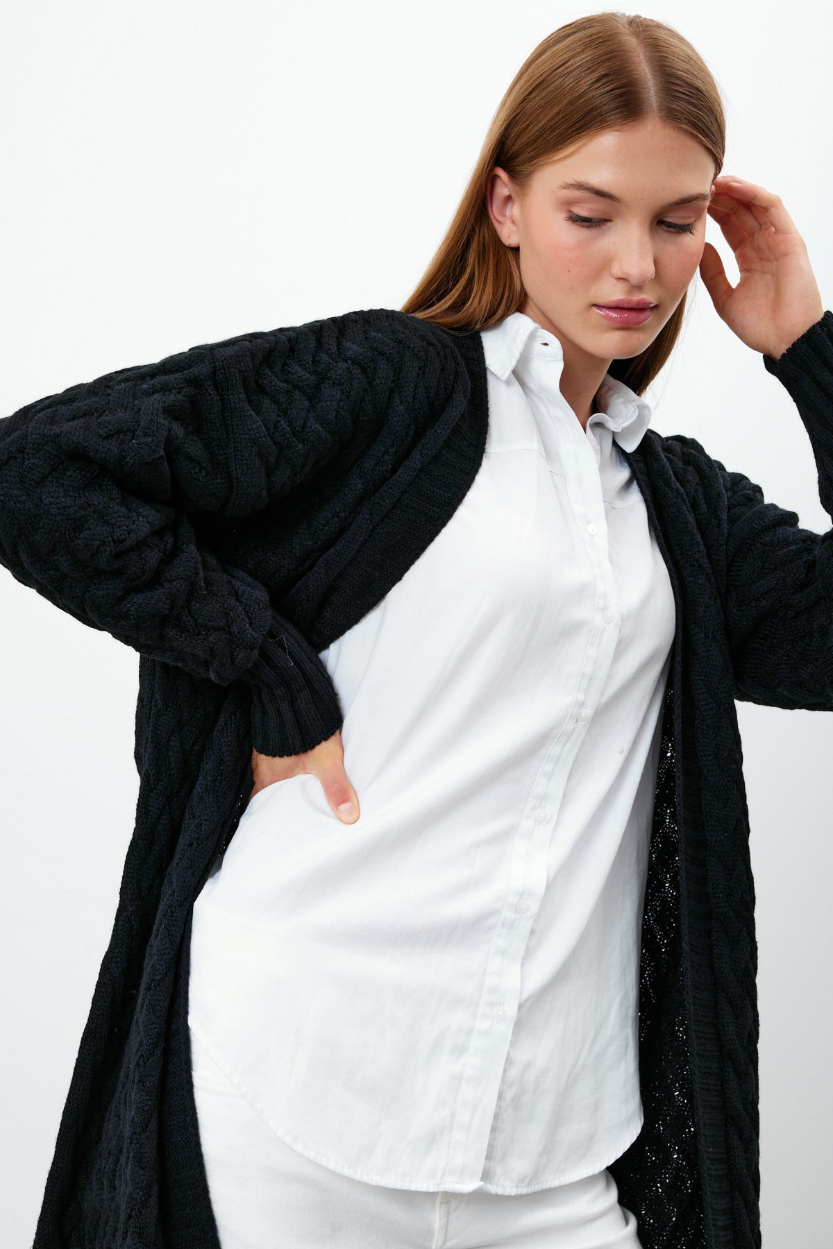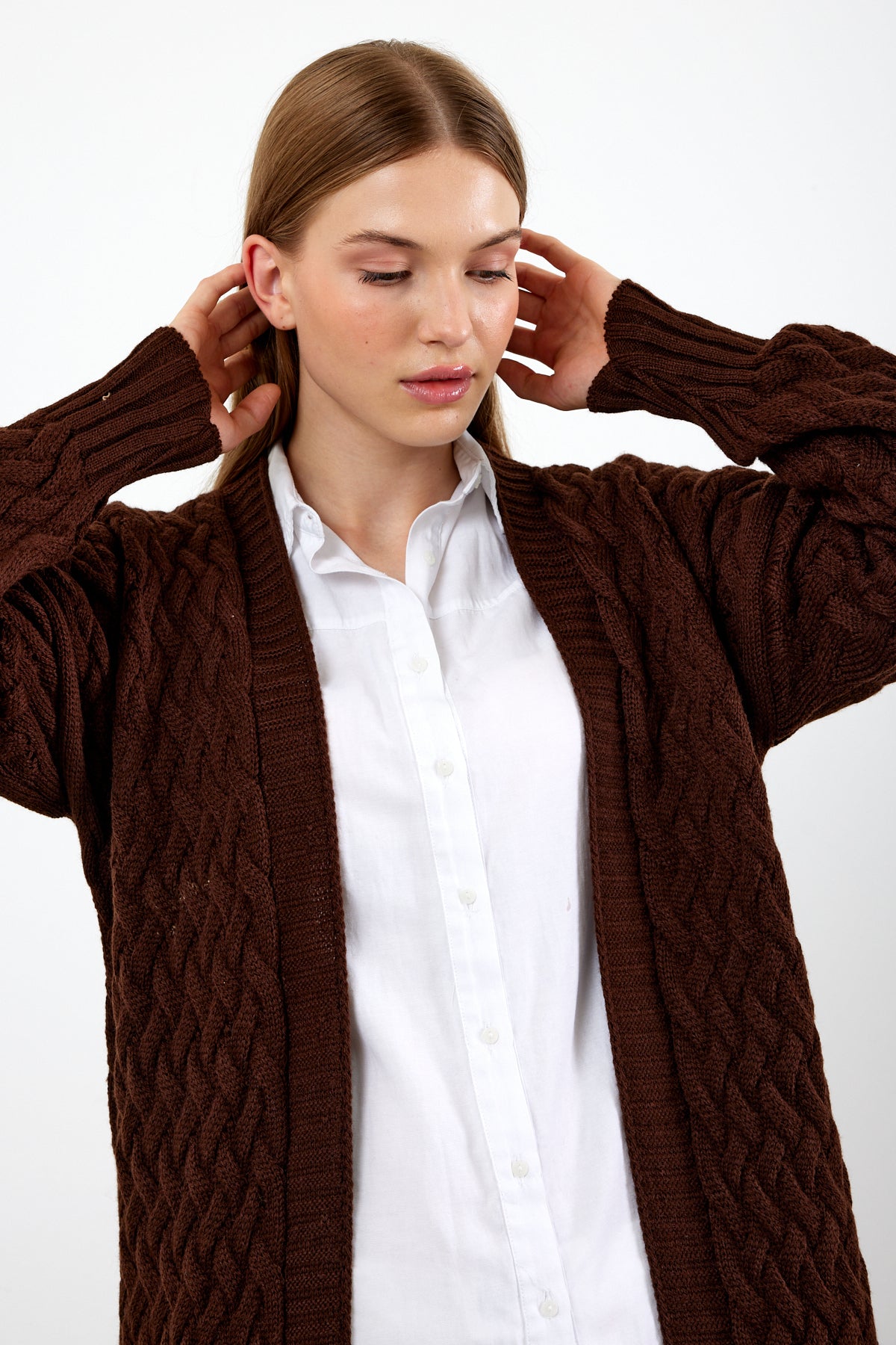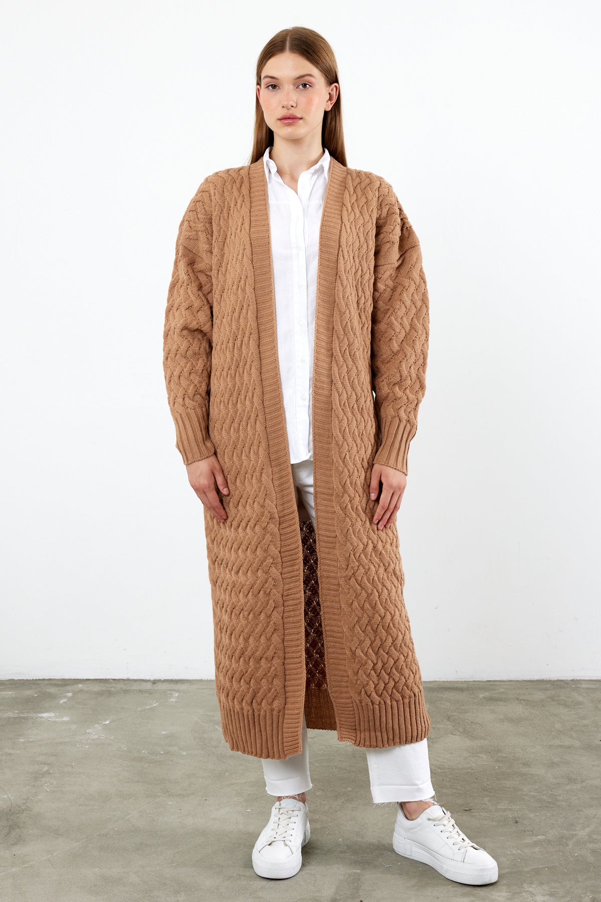Long Length Knit Cardigan Maxi Length Cover Up Knit Detailed Solid Color - SKU: 3860