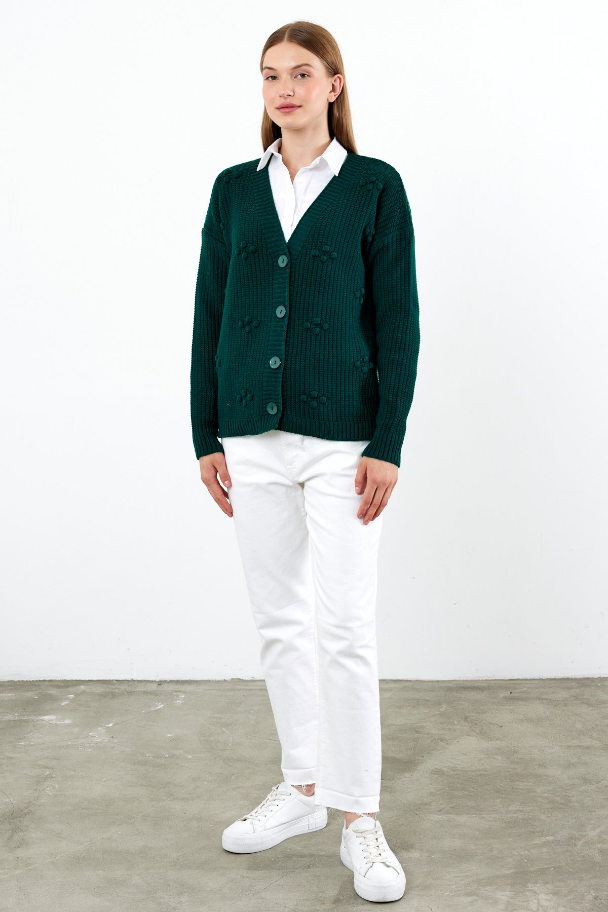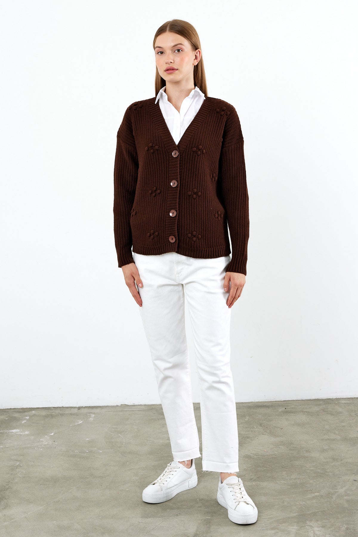Short Knit Cardigan Solid Color Knit Detailed - SKU: 4002