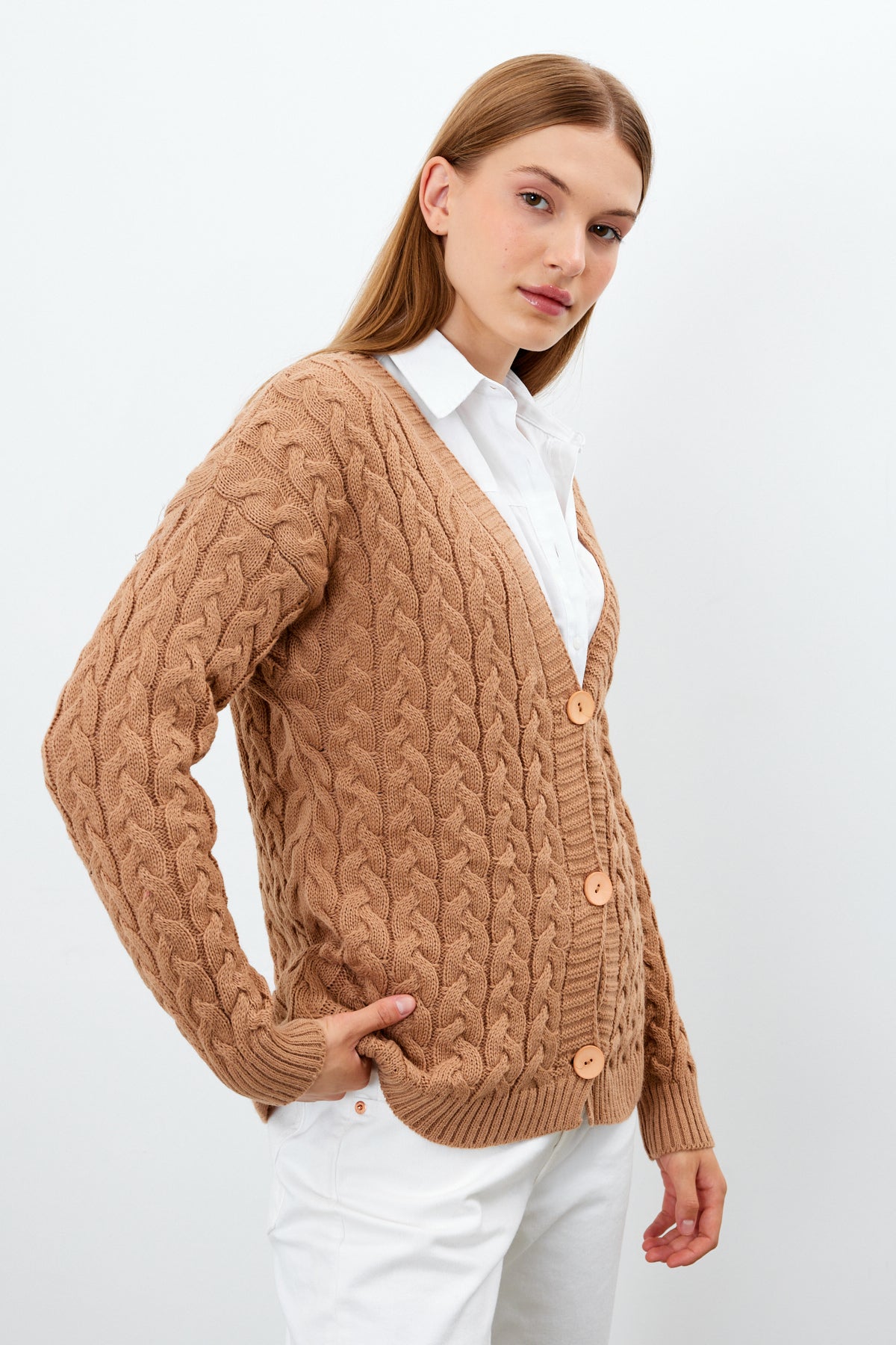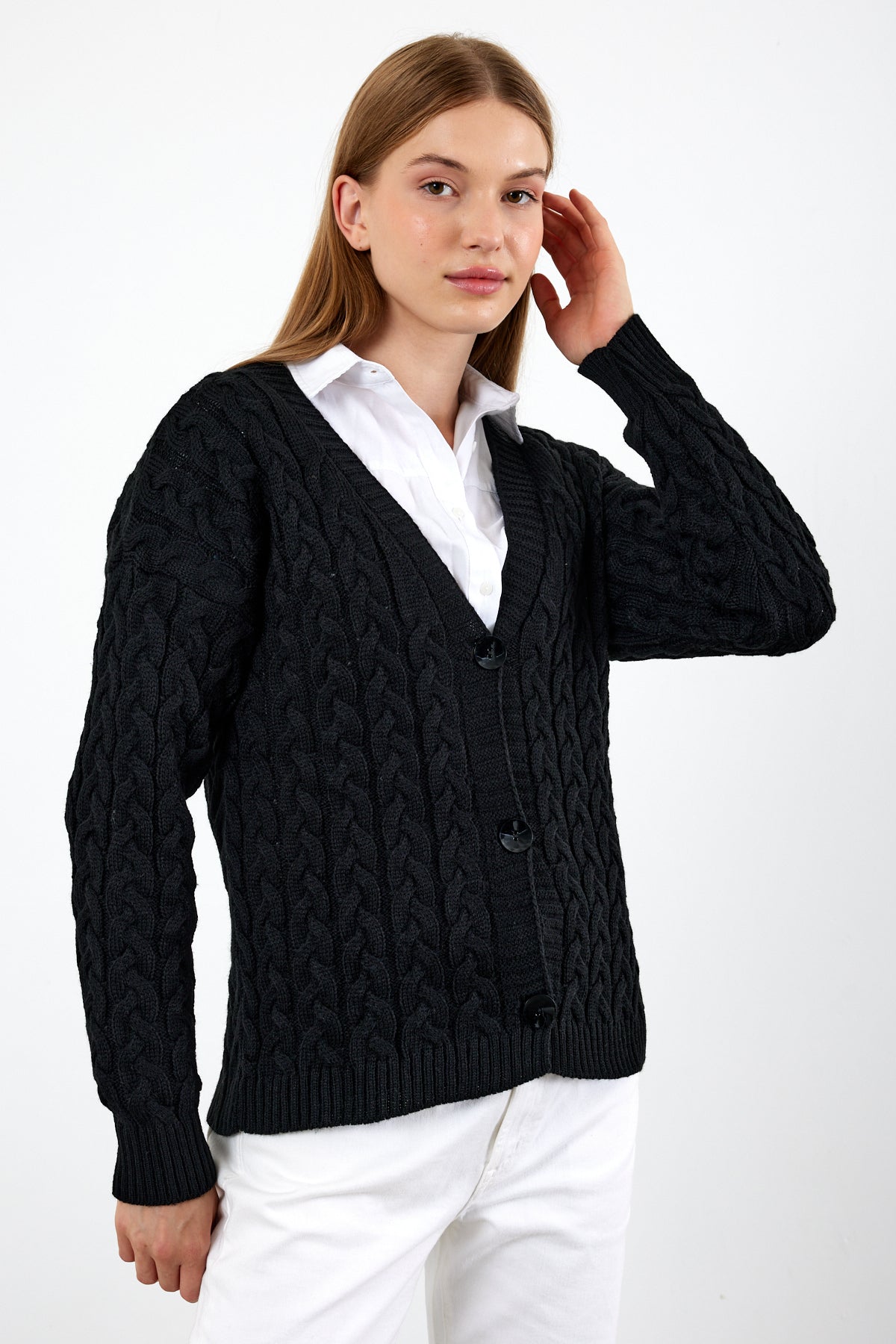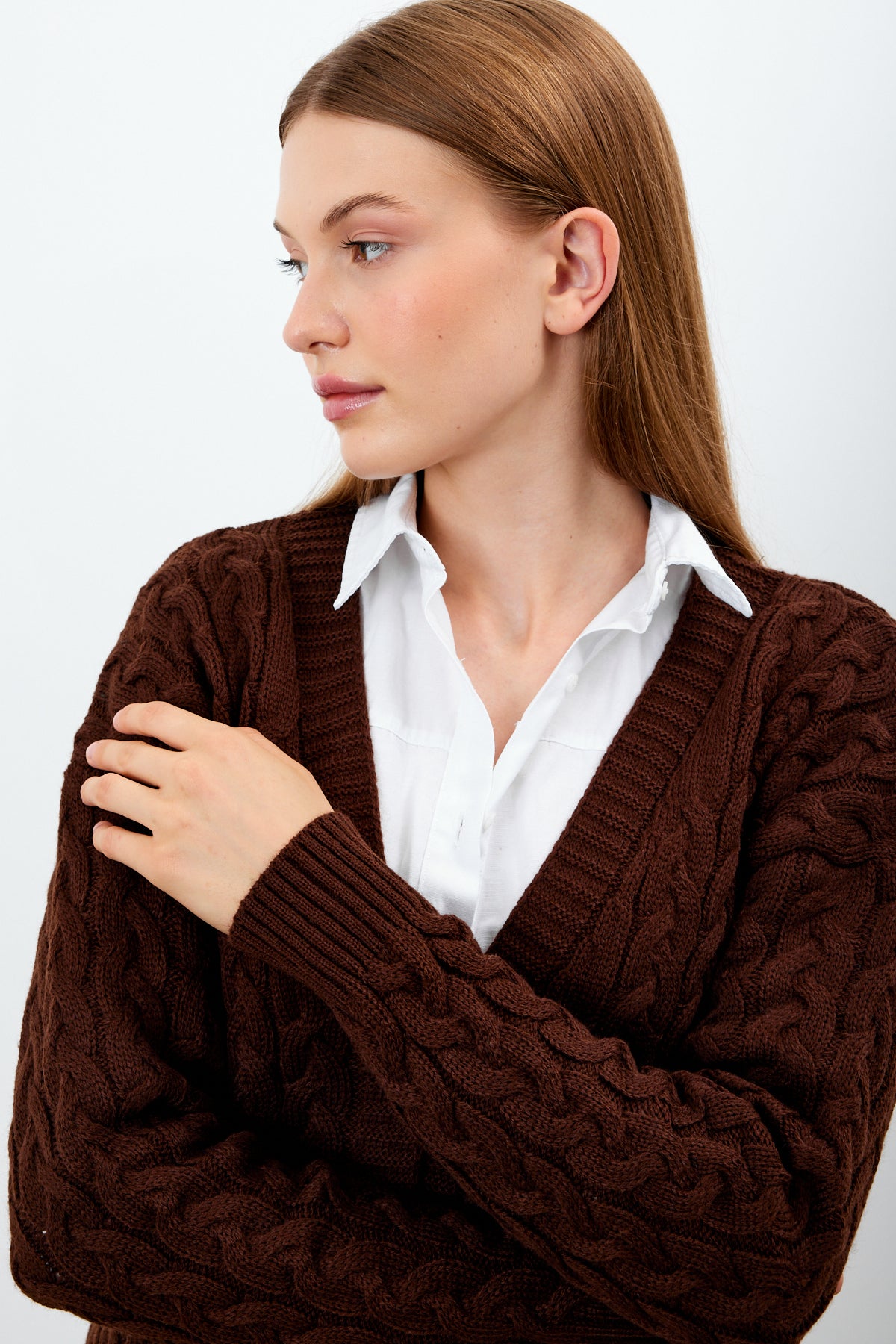 Solid Color Short Knit Cardigan Thick Knitted Details - SKU: 3790