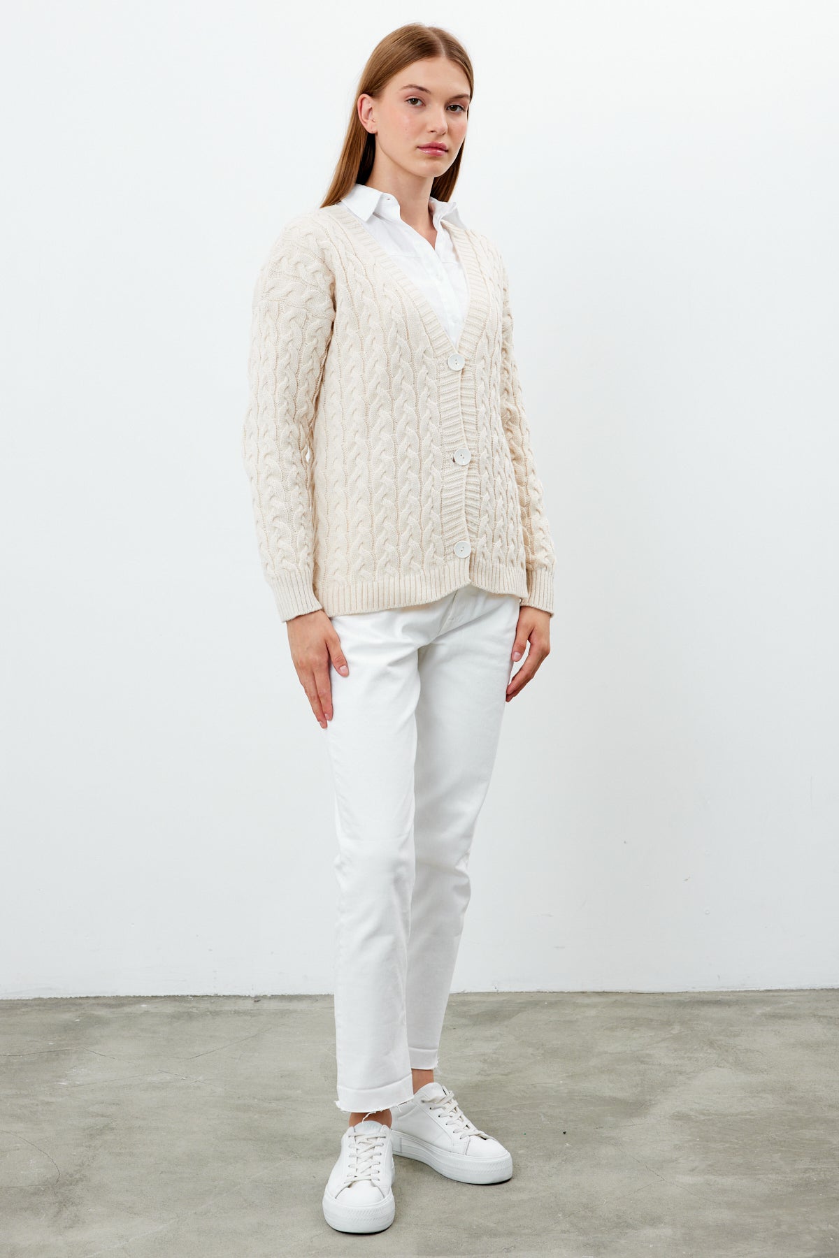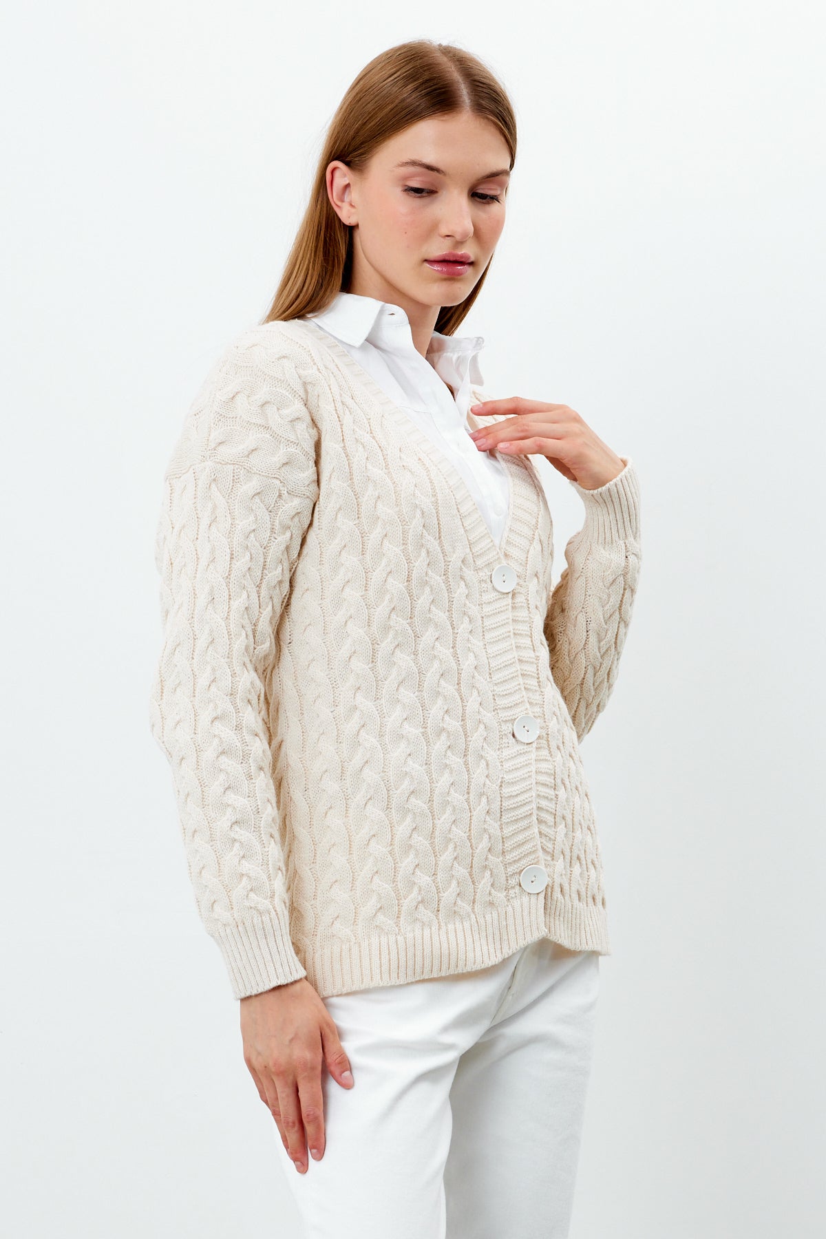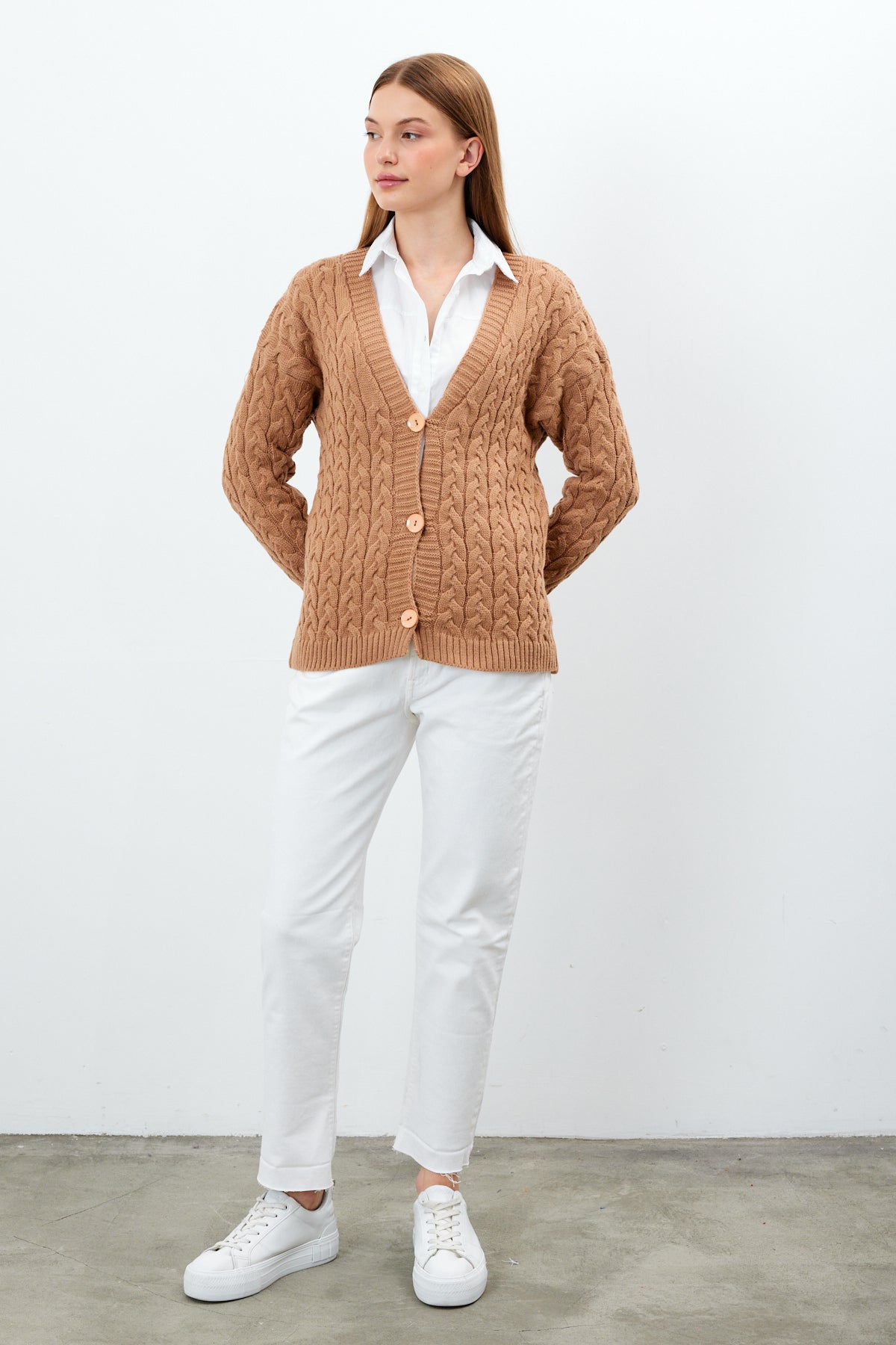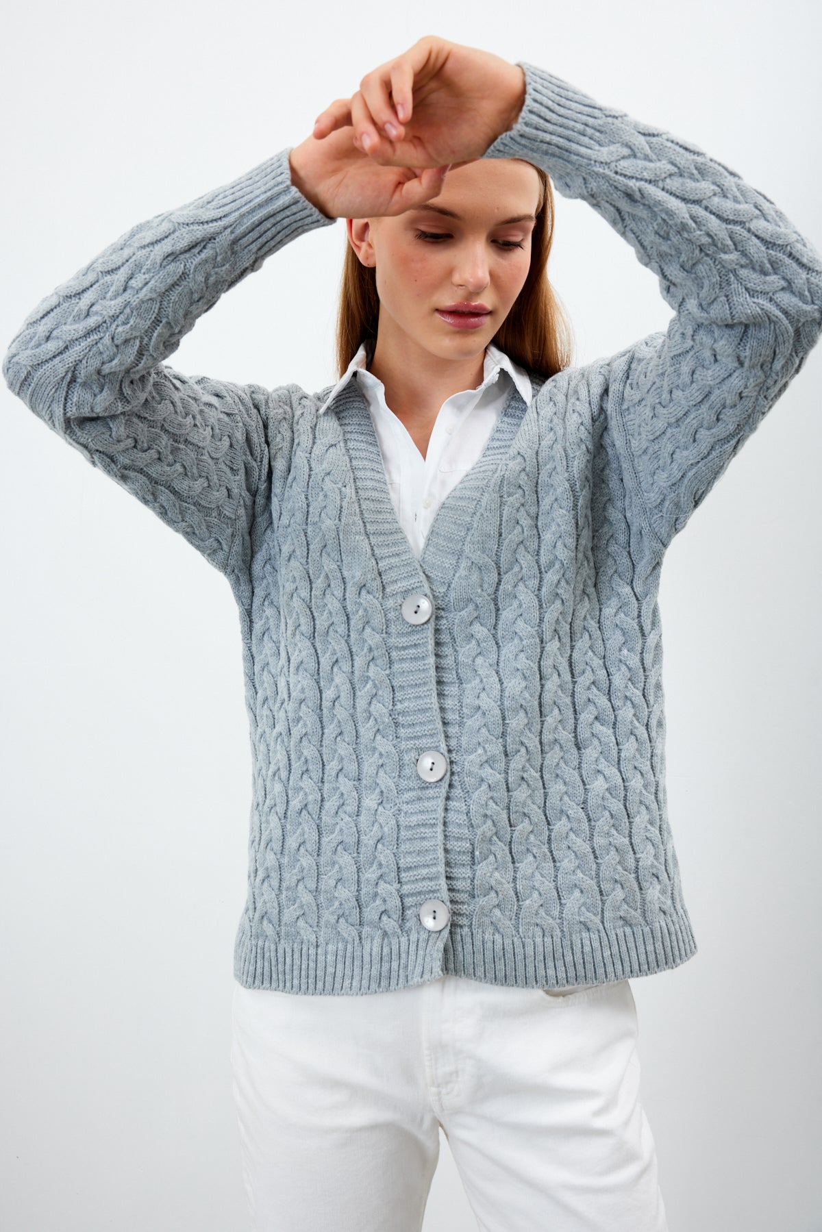 Solid Color Short Knit Cardigan Thick Knitted Details - SKU: 3790