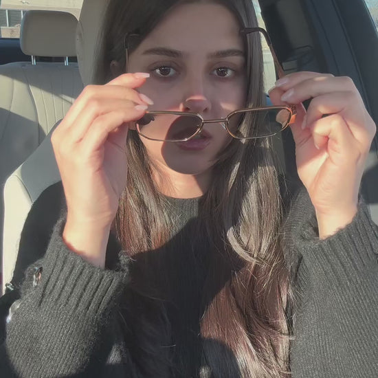Trendy metal oval sunglasses featuring a slim, lightweight frame and UV400 lenses. A modern yet vintage-inspired style that’s easy to wear and flattering on many face shapes.